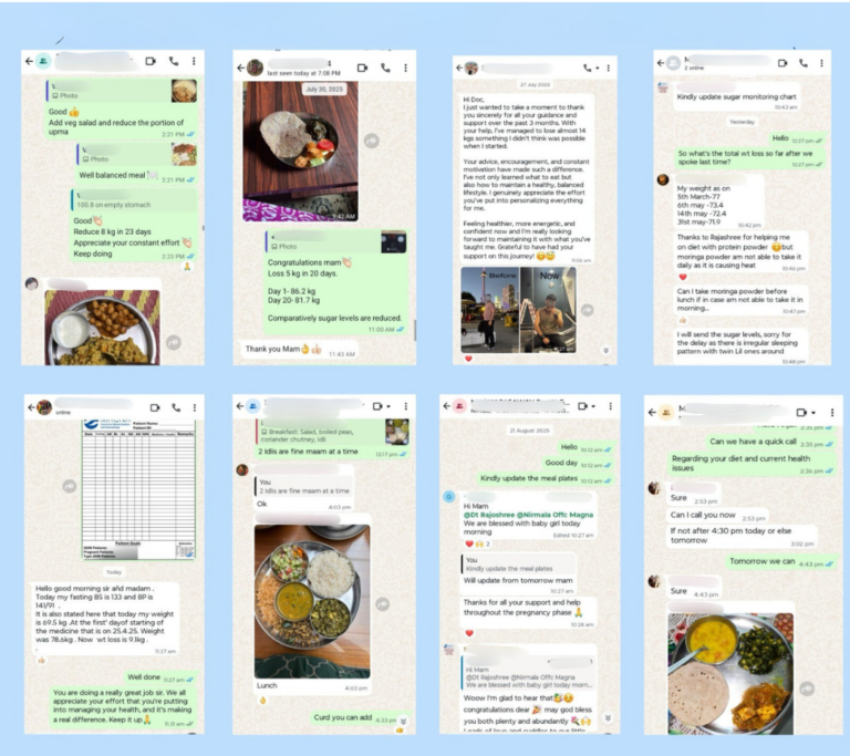 Once you join, we create a private, secure WhatsApp group dedicated solely to your health. Your team (Endocrinologist, Dietician, Educator, etc.) is added to this group. You can post photos of your meals, share your sugar readings, or ask questions Anytime. It’s like having a medical clinic in your pocket that never closes.